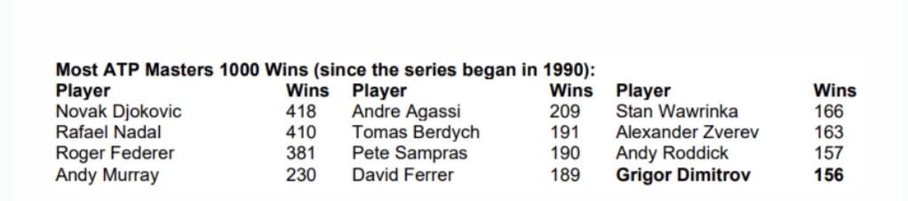 Grigor Dimitrov has now the same number of Master 1000 Wins as Andy Roddick: 157 #IndianWells
