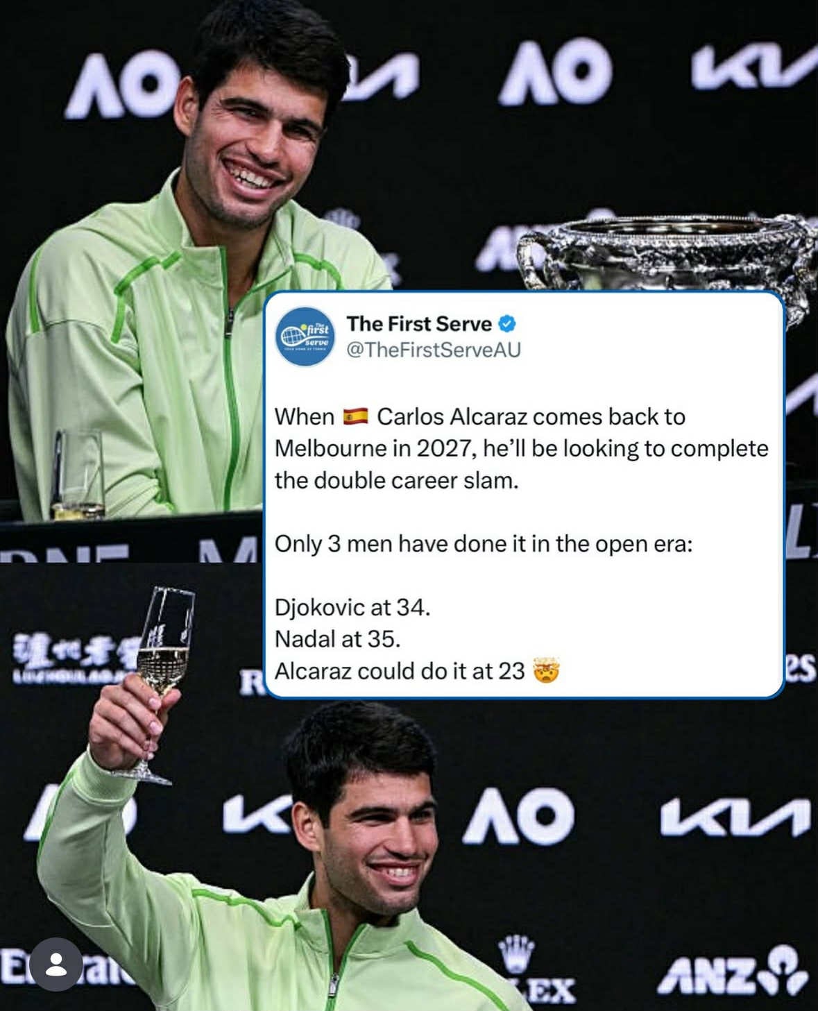 Карлос Алкарас се превърна в най-младия носител на "Кариерен шлем" в историята, след като завоюва дебютната си титла от Аустрелиън Оупън и така попълни своята колекция от "мейджър" титли на едва 22-годишна възраст, с което задмина категорично досегашното най-добро постижение в историята, което беше дело на Рафаел Надал - 24-годишен по това време.