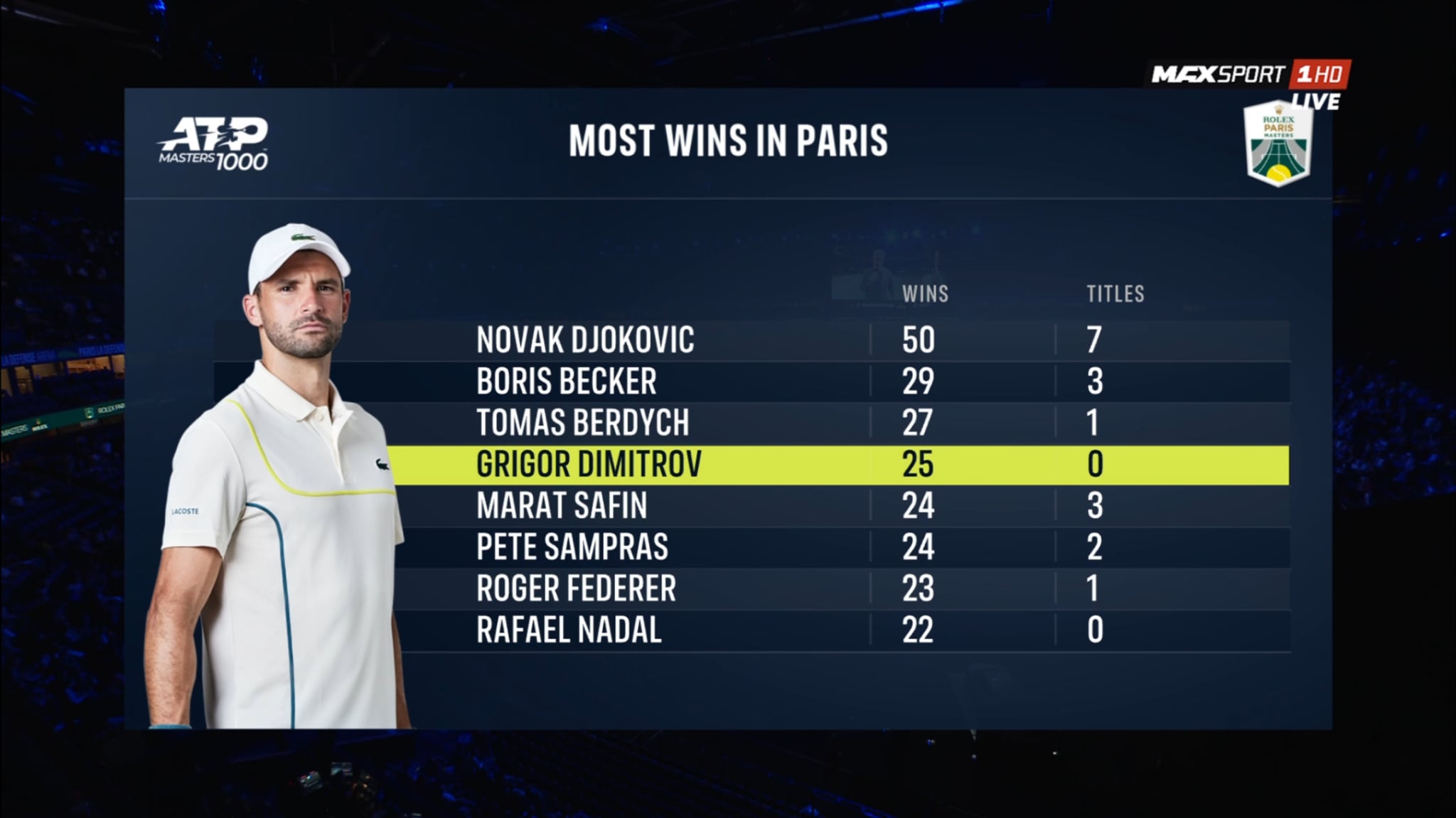 Самата победа всъщност превръща Димитров в един от най-успешните играчи в цялата история на турнира, тъй като е 24-та в неговата кариера и с нея той изпревари легенди от ранга на Марат Сафин и Пийт Сампрас (23), а Роджър Федерер (23) и Рафаел Надал (22) също са зад него по този показател.